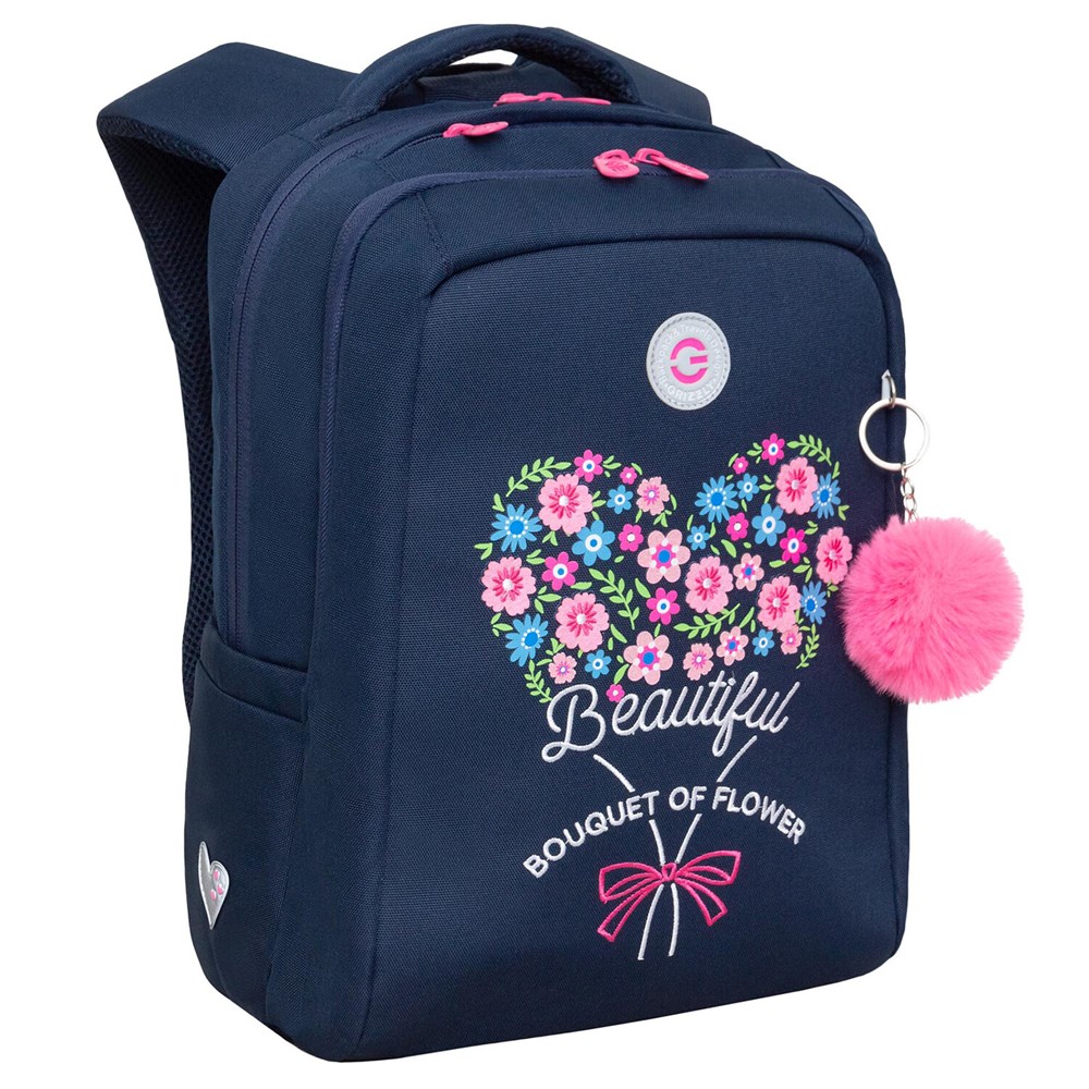 Рюкзак GRIZZLY школьный, анатомическая спинка, 2 отделения, для девочек, "BOUQUET", 39х26х17 см, RG-466-4/1