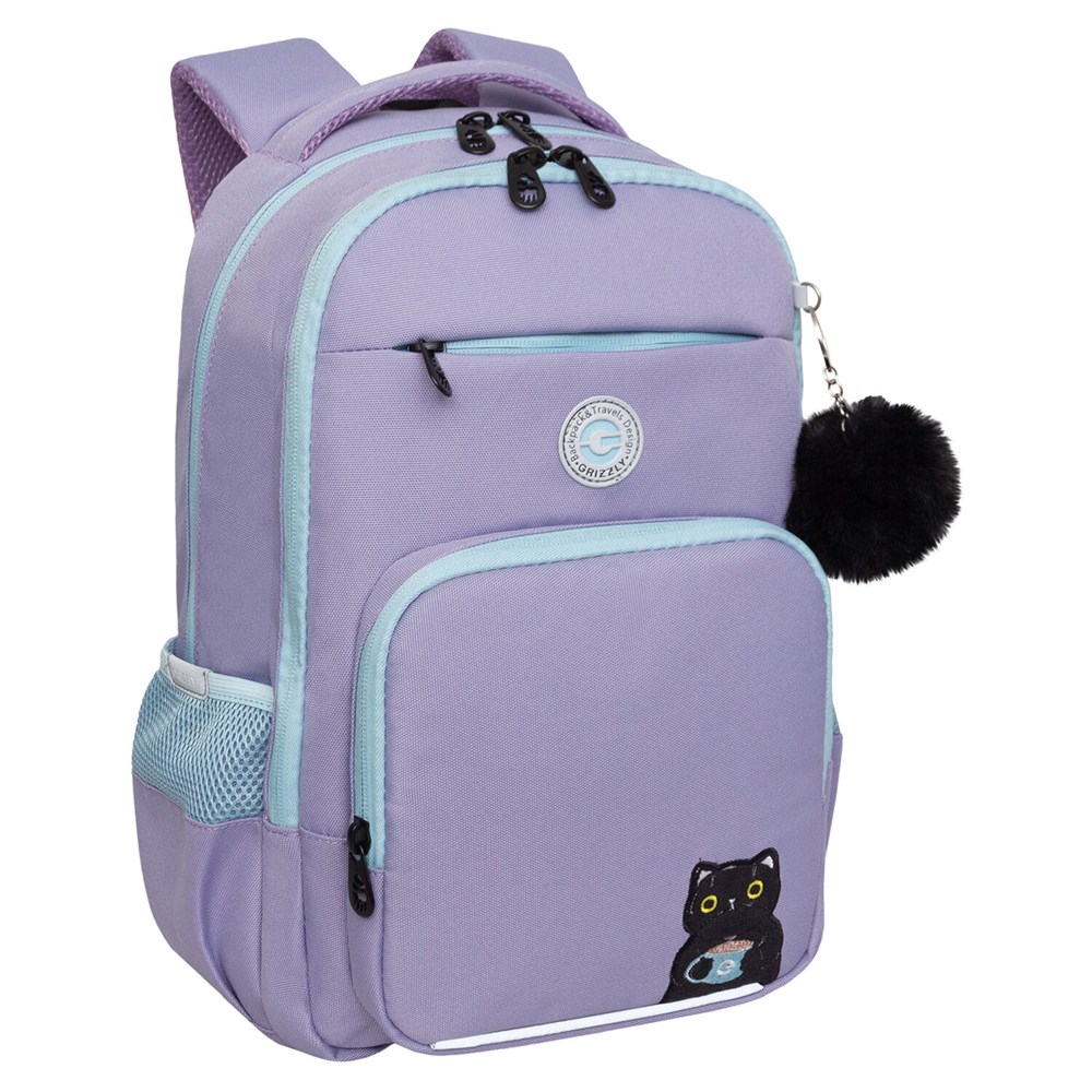 Рюкзак GRIZZLY школьный, анатомическая спинка, 2 отделения, для девочек, "CATCAO", лавандовый, 40х25х13 см, RG-564-2/3