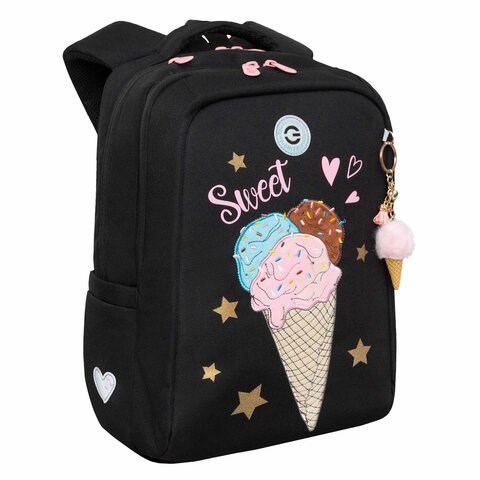 Рюкзак GRIZZLY школьный, анатомическая спинка, 2 отделения, для девочек, SWEET, черный, 39х26х17 см, RG-466-3/4