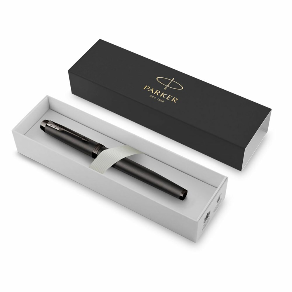 Подарочная ручка-роллер PARKER "IM Professionals Monochrome Titanium" выполнена из нержавеющей стали и покрыта матовым лаком металлик тёмно-серого цвета. Декоративные элементы c отделкой PVD.В комплекте: подарочная коробка, стержень черного цвета.