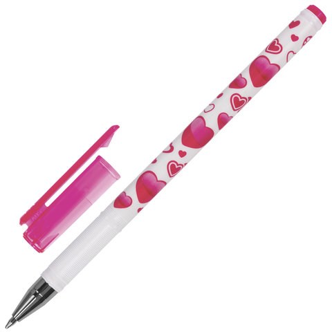 Ручка шариковая BRAUBERG Сердечки, СИНЯЯ, корпус с печатью, узел 0,7 мм, линия письма 0,35 мм, 141535