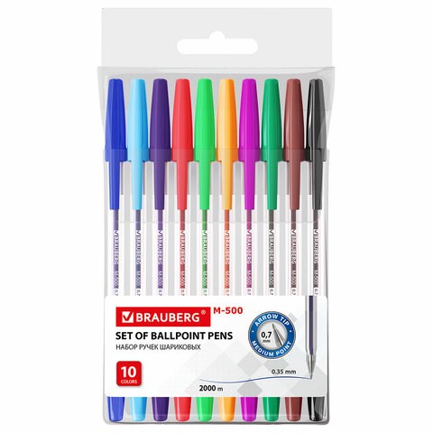 Ручки шариковые BRAUBERG "M-500", НАБОР 10 цветов, АССОРТИ, узел 0,7 мм, линия письма 0,35 мм, 14345