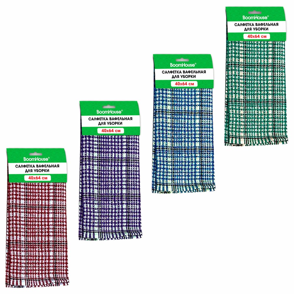 Салфетка вафельная универсальная ХЛОПОК 40 х 64 см, мелкая клетка, ассорти, BOOMHOUSE, 700885