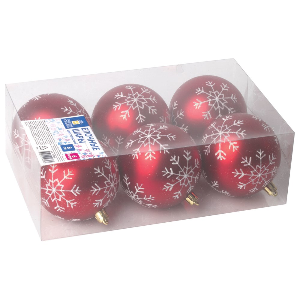 Шары ёлочные 6 шт., 8 см, "Basic Art", пластик, цвет: красный/белый, ЗОЛОТАЯ СКАЗКА, 590891