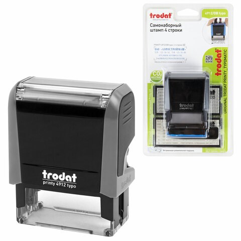 Штамп самонаборный 4-стр, 47х18 мм, синий, TRODAT 4912P4/DB, корпус СЕРЫЙ, КАССЫ В КОМПЛЕКТЕ, 43215