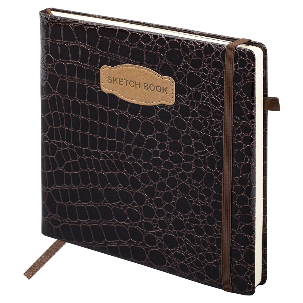 Скетчбук, слоновая кость 140 г/м2, 200х200 мм, 80 л., КОЖЗАМ, резинка, BRAUBERG ART CLASSIC, CROCO, коричневый, 116473