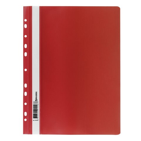 Скоросшиватель пластиковый с перфорацией BRAUBERG, А4, 140/180 мкм, красный, 226582