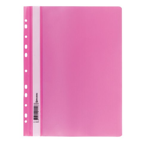Скоросшиватель пластиковый с перфорацией BRAUBERG, А4, 140/180 мкм, розовый, 226588