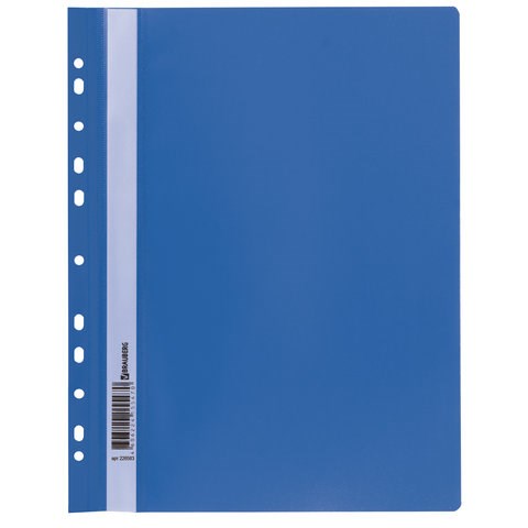 Скоросшиватель пластиковый с перфорацией BRAUBERG, А4, 140/180 мкм, синий, 226583