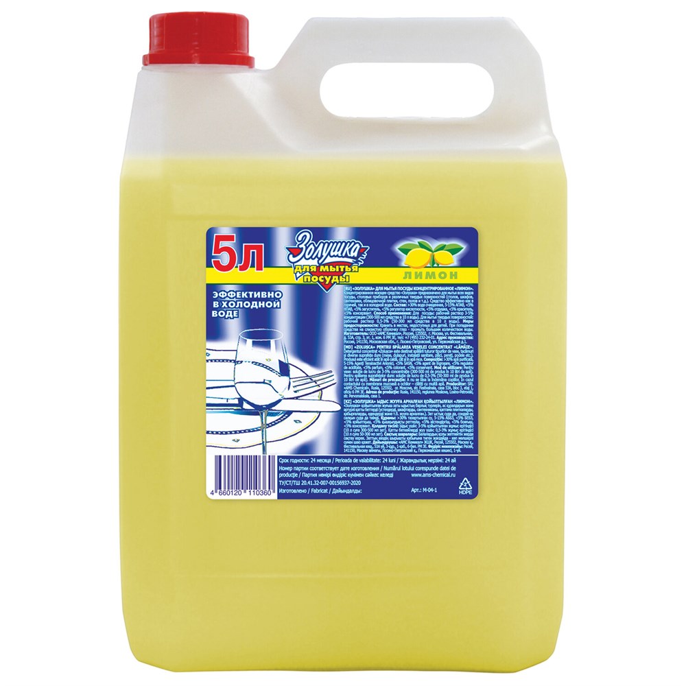 Средство для мытья посуды 5 л, ЗОЛУШКА, концентрат, "Лимон"