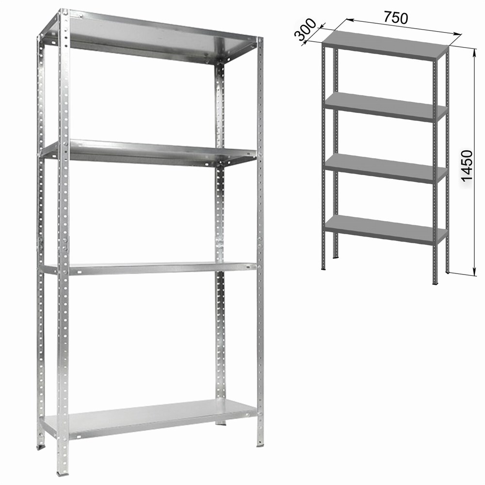 Стеллаж металлический ПРАКТИК "ES" облегченный (1450х750х300 мм), 4 полки, оцинкованная сталь