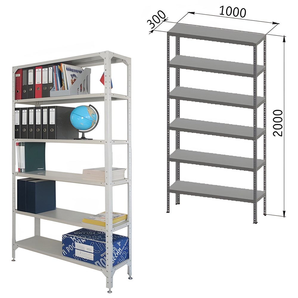 Стеллаж металлический "УНИВЕРСАЛ", 2000х1000х300 мм, УСИЛЕННЫЕ СТОЙКИ, 6 полок, регулируемые опоры, 290144