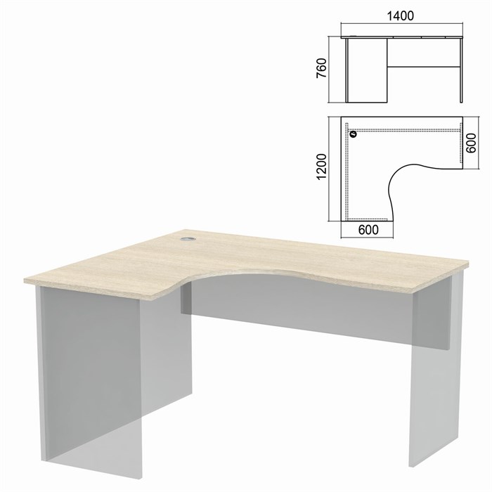 Стол компактный ЧАСТЬ 1 "Арго", 1400х1200х760 мм, левый, ясень шимо