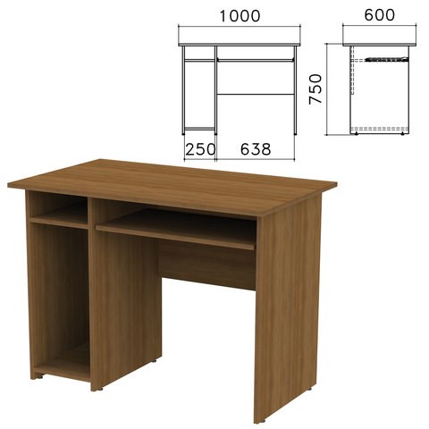 Стол компьютерный "Канц" (ш1000*г600*в750 мм), с тумбой, цвет орех
