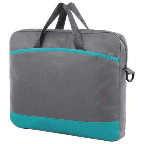 Сумка для документов STAFF MANAGER на молнии с карманом, полиэстер, серо-бирюзовая, 32х37х5 см, 270837
