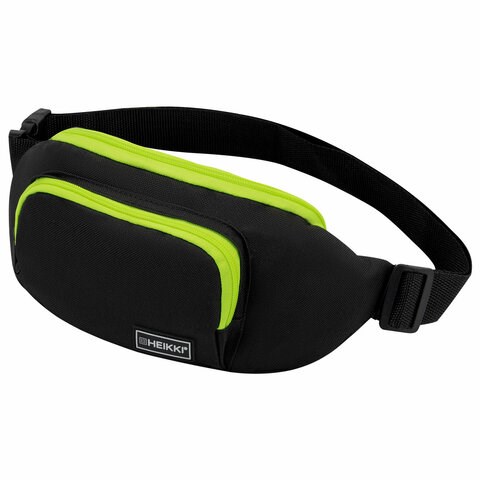 Сумка на пояс HEIKKI RIO (ХЕЙКИ), карман, регулируемый ремень, черная/салатовая, 30х12x10 см, 272615