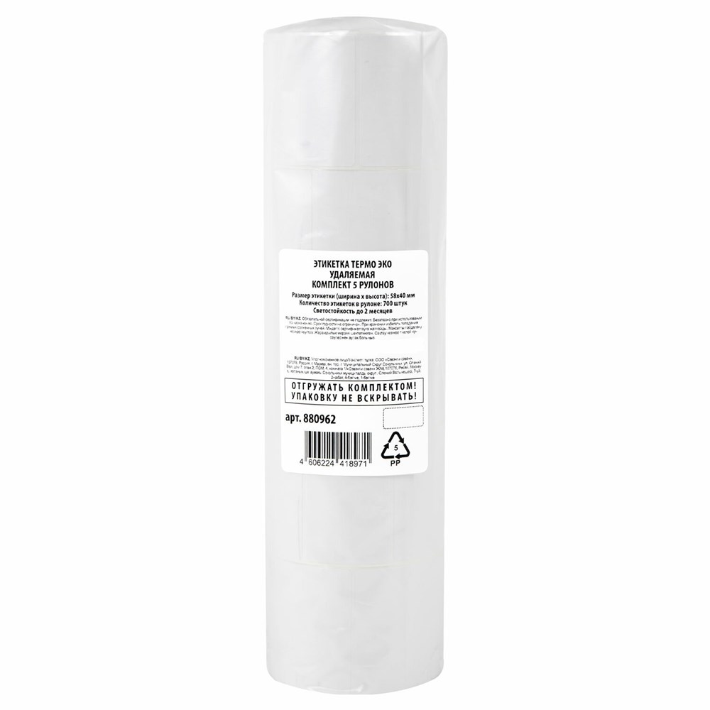 Термоэтикетки ЭКО, 58х40 мм, КОМПЛЕКТ 5 рулонов по 700 этикеток, УДАЛЯЕМЫЙ КЛЕЙ, 880962