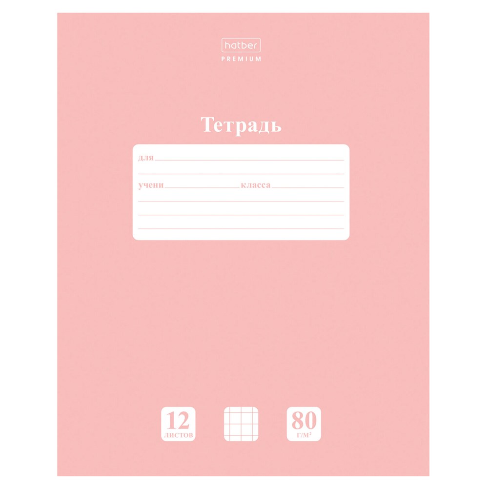 Тетрадь 12 л., HATBER Premium, клетка, обложка картон, плотная бумага 80 г/м2, "NEWtone" Розовый кварц, 089680, 12Т5A1_05056