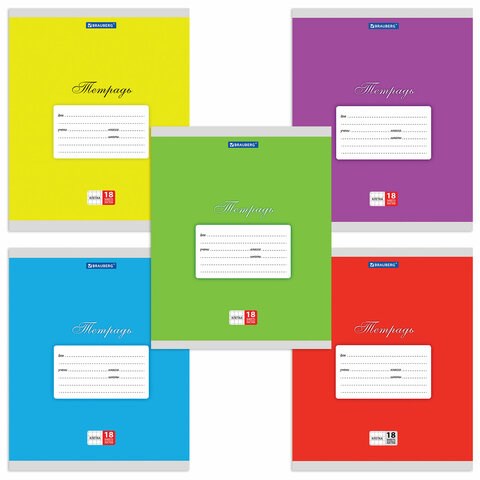 Тетрадь 18 л. BRAUBERG КЛАССИКА, клетка, обложка картон, АССОРТИ (5 видов), 401991
