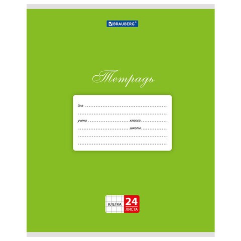 Тетрадь 24 л. BRAUBERG КЛАССИКА, клетка, обложка картон, ЗЕЛЕНАЯ, 104738