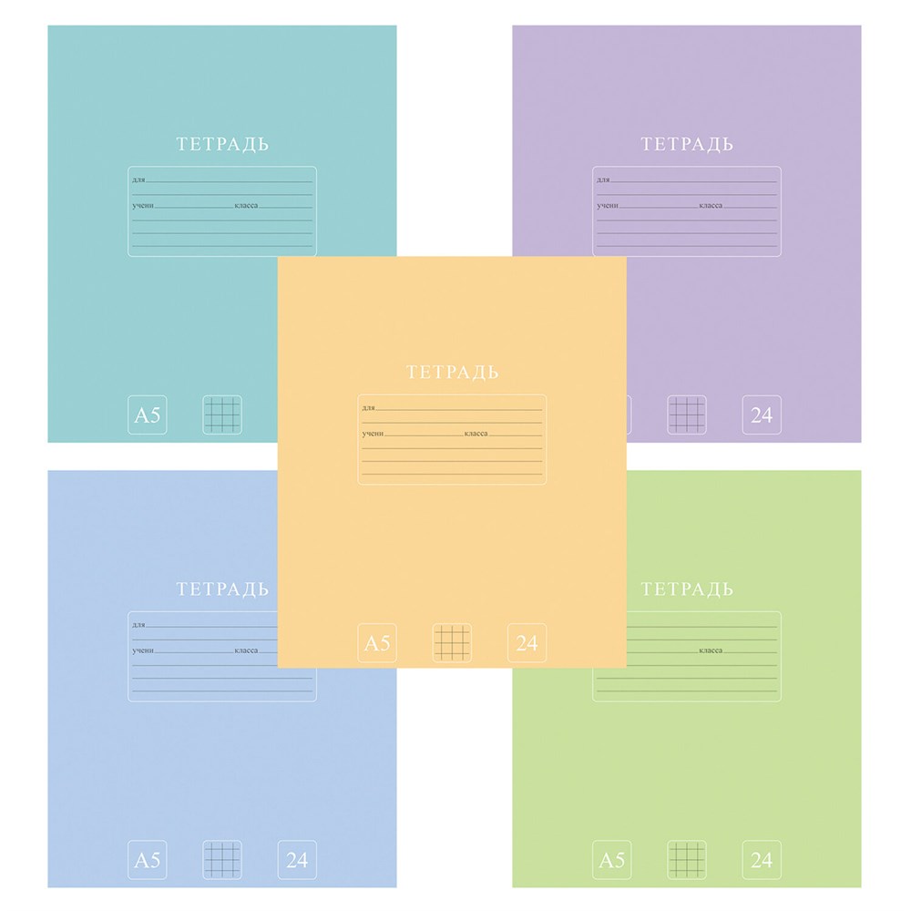 Тетрадь 24 л., HATBER-ECO клетка, офсет №2 ЭКОНОМ, обложка картон, PUREcolour (микс в спайке), 092112, 24Т5C1