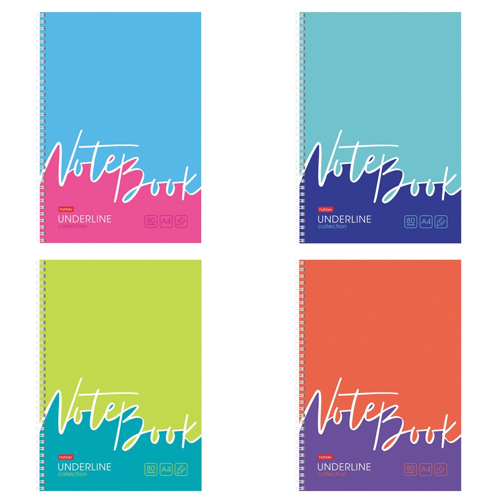Тетрадь А4 80 л., HATBER, гребень, клетка, обложка картон, жесткая подложка, "Underline" (микс), 077006, 80Т4В1гр
