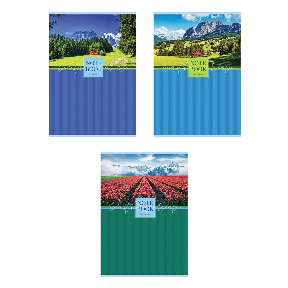 Тетрадь А4 80 л., HATBER, скоба, клетка, глянцевая ламинация, "Живописные пейзажи" (микс), 083006, 80Т4лВ1