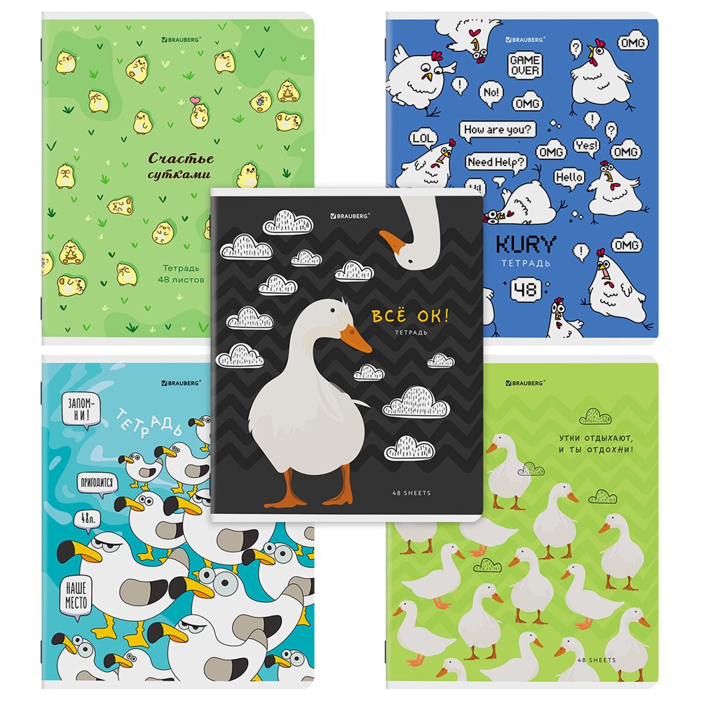 Тетрадь А5, 48 л., BRAUBERG, скоба, клетка, TWIN-лак, "КУРЛЫК И ВСЕ ВСЕ ВСЕ", (микс в ПУ), 405338