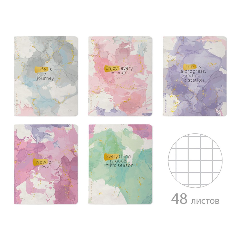 Тетрадь А5 48 л. BRUNO VISCONTI скоба, клетка, Soft Touch, фольга, "PRIMAVERA" (5 видов), 7-48-1321