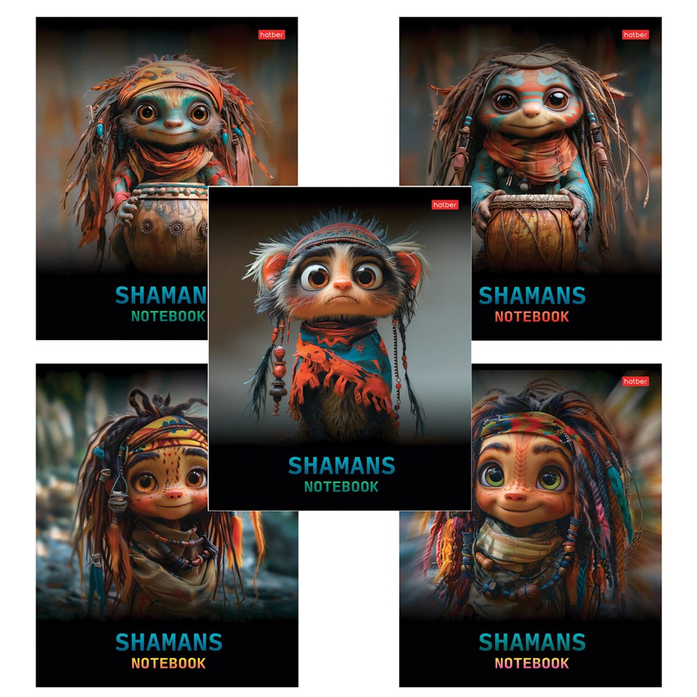 Тетрадь А5 48 л., HATBER скоба, клетка, глянцевая ламинация, "Шаманы" (микс в спайке), 088374, 48Т5лВ1