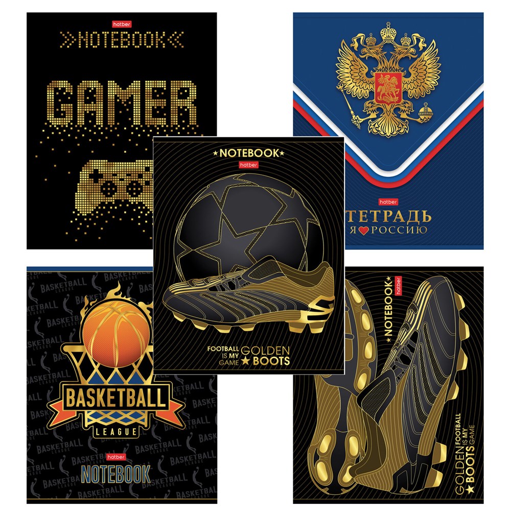 Тетрадь А5 48 л,. HATBER скоба, клетка, матовая ламинация, 3D-фольга, "Для мальчиков" (микс), 087357, 48Т5лофВ1