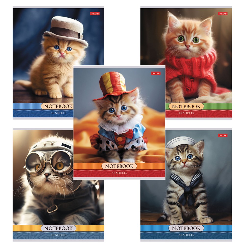 Тетрадь А5 48 л., HATBER скоба, клетка, обложка картон, "Котики-артисты" (микс в спайке), 085664, 48Т5В1