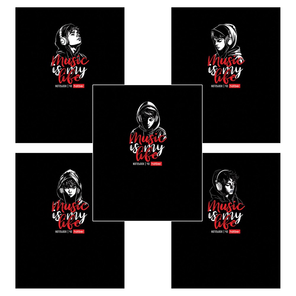 Тетрадь А5 48 л. HATBER скоба, клетка, выборочный лак, "Music is my life" (микс в спайке), 091471, 48Т5вмВ1