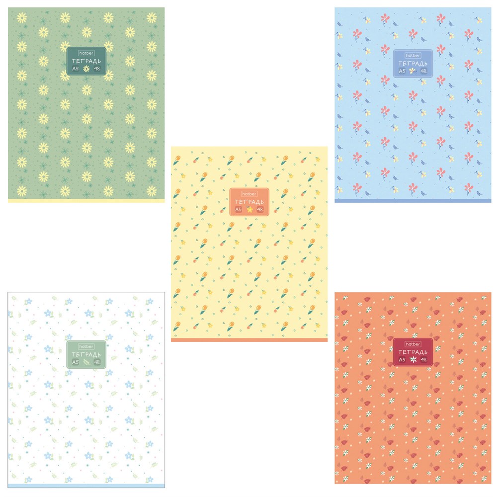 Тетрадь А5 48л. HATBER скоба, клетка, обложка картон, тиснение, Цветочный орнамент (м, 48Т5тВ1