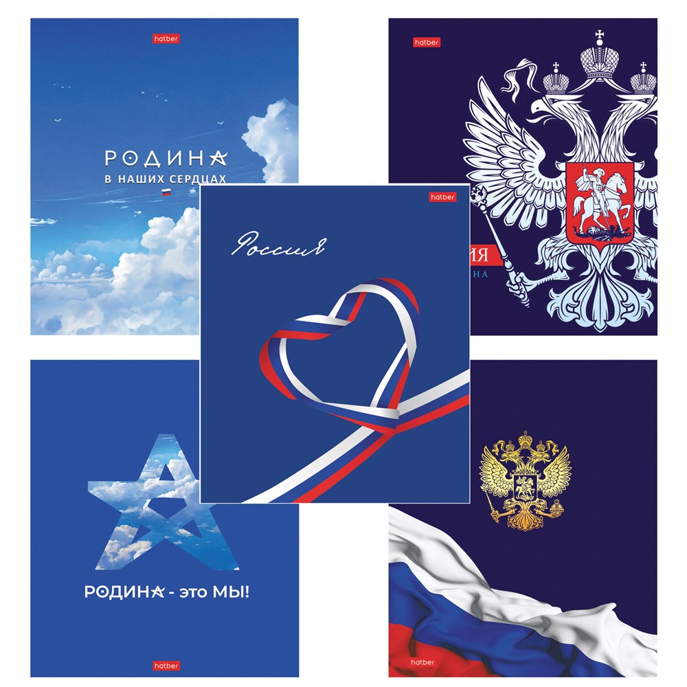 Тетрадь А5 48л. HATBER скоба, клетка, обложка картон, Я люблю Россию (микс в спайке), 088671, 48Т5В1