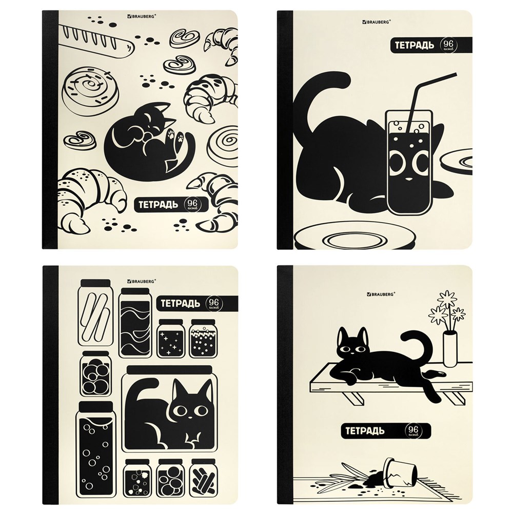 Тетрадь А5 96 л. BRAUBERG, на сшивке с корешком, клетка, обложка картон, "Кот-Непоседа", 405292