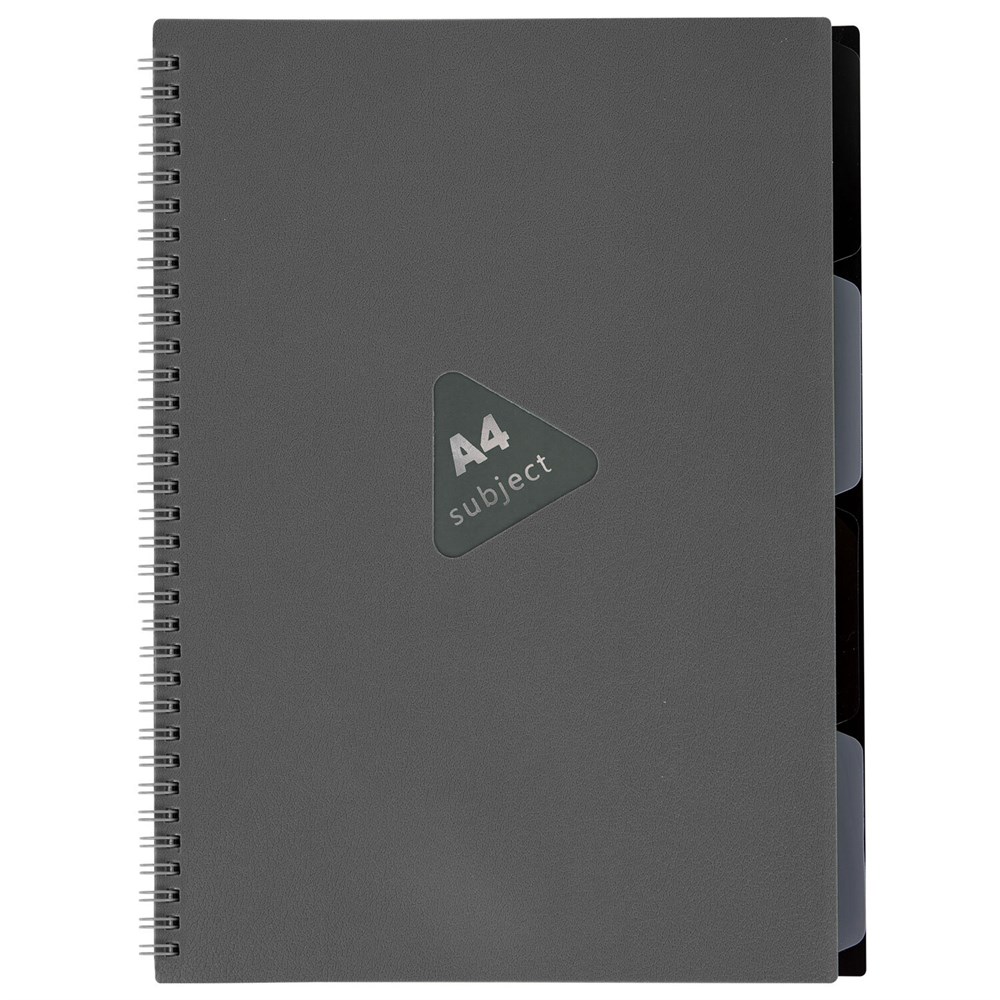 Тетрадь обложка пластик, А4 80 л., гребень, 4 разделителя, клетка, BRAUBERG, серый, 405365
