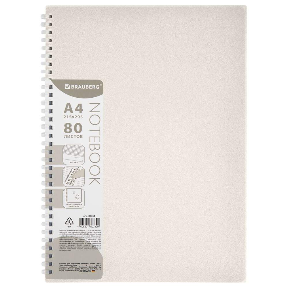 Тетрадь обложка пластик, А4 80 л., гребень мягкий (силиконовый), клетка, BRAUBERG, бежевая, 405354
