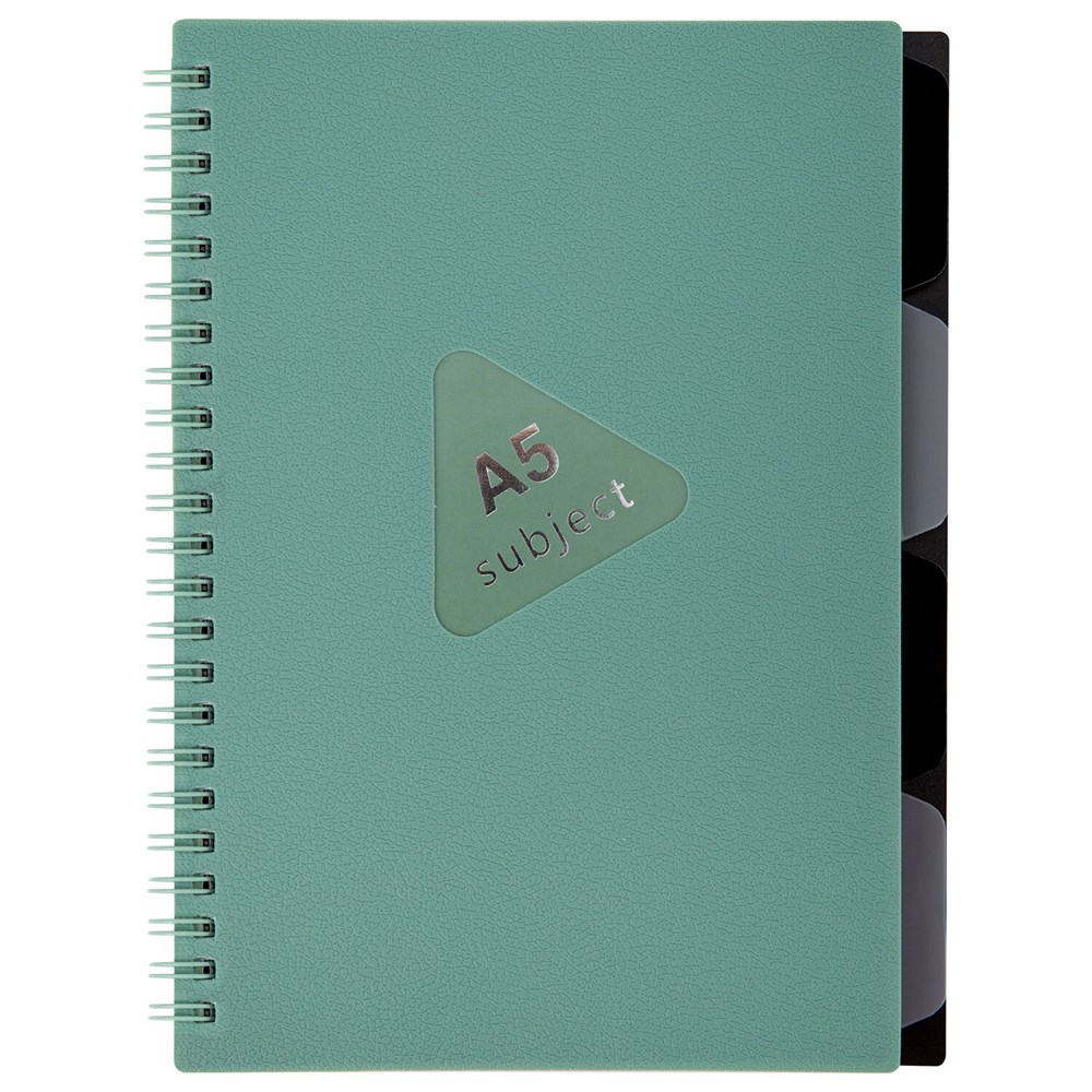 Тетрадь обложка пластик, А5 80 л., гребень, 4 разделителя, клетка, BRAUBERG, зеленый, 405367