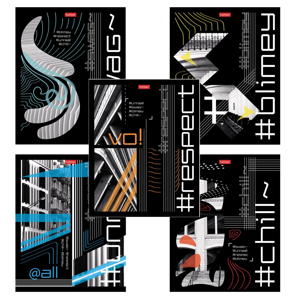 Тетрадь обложка пластик с печатью, А5, 80 л., скоба, клетка, HATBER, "Хештег" (микс в спайке), 090260, 80Т5В1пл