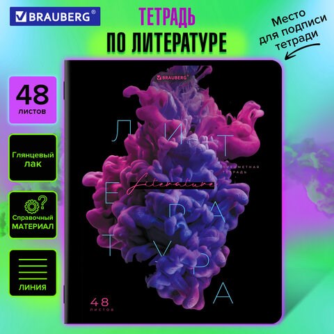 Тетрадь предметная PIGMENT 48 л., глянцевый УФ-лак, ЛИТЕРАТУРА, линия, подсказ, BRAUBERG, 404766
