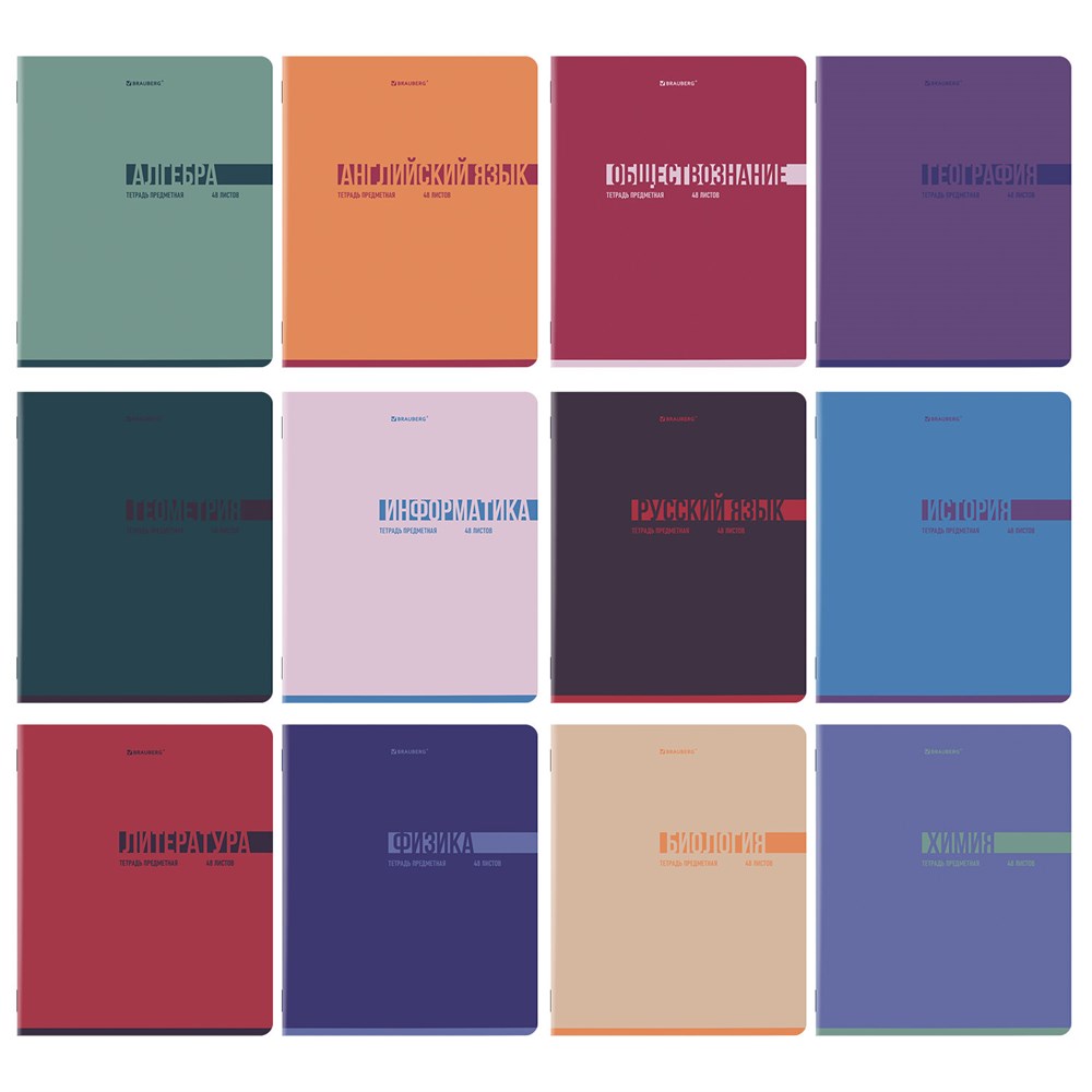 Тетради предметные, КОМПЛЕКТ 12 ПРЕДМЕТОВ, 48 л., обложка картон, BRAUBERG "VIBE", 405163