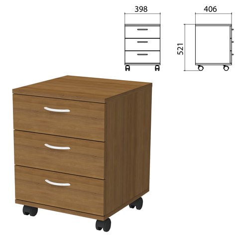 Тумба подкатная Бюджет, 398х406х521 мм, 3 ящика, орех французский