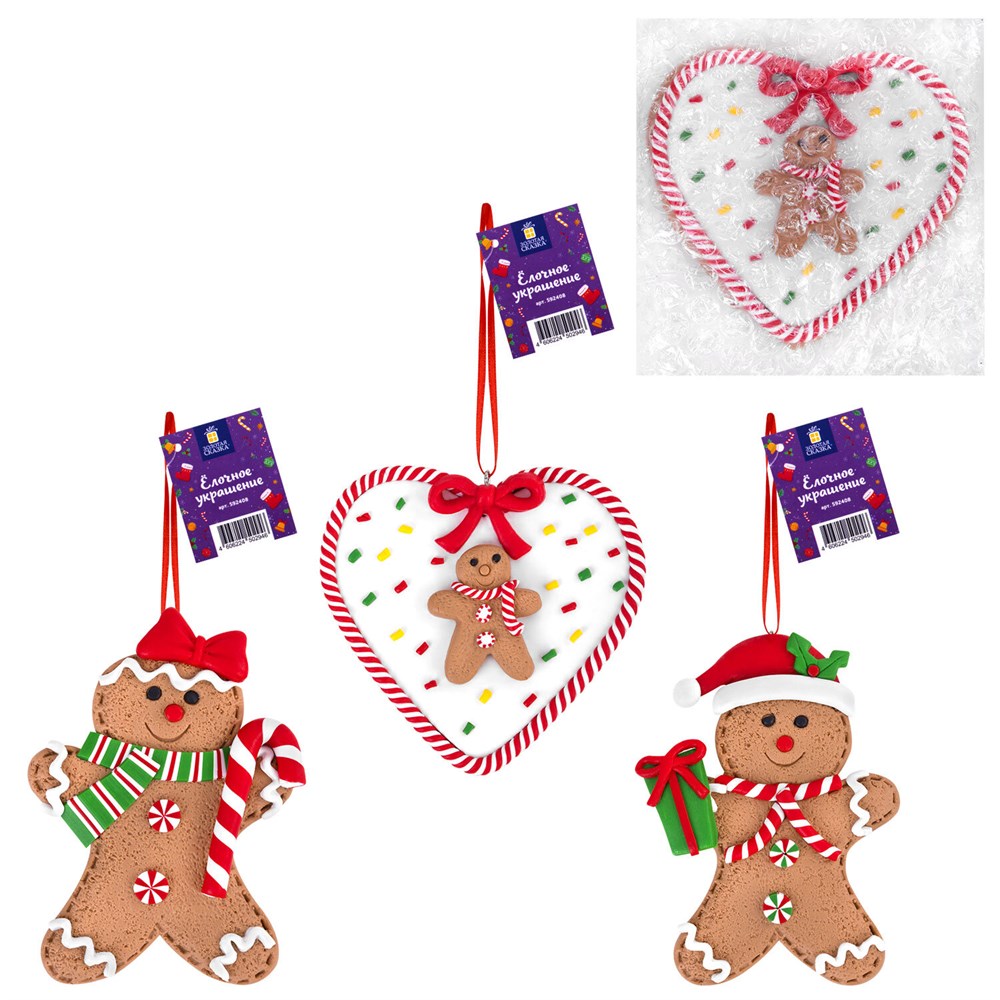 Украшение елочное (1 шт.) "Пряник", 12х9 см, полимерная глина, ассорти 3 дизайна, ЗОЛОТАЯ СКАЗКА, 592408