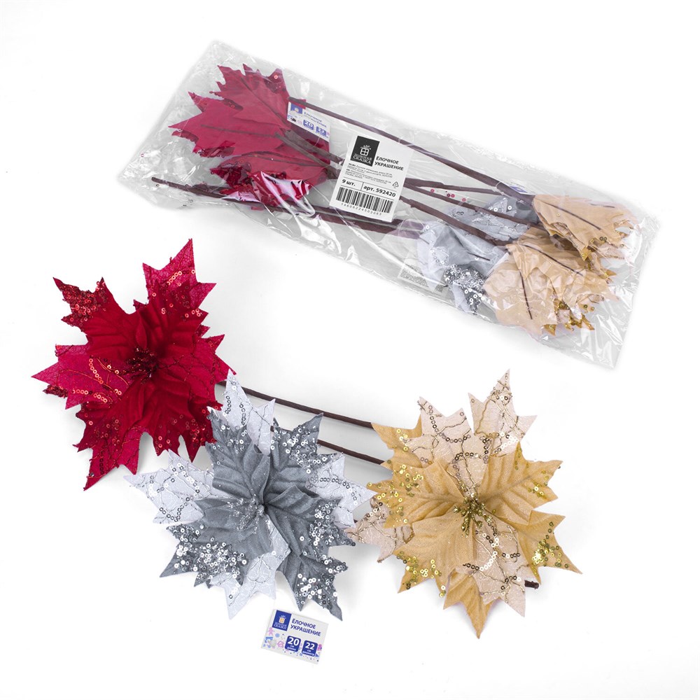 Украшение елочное 1 шт., "Цветок", диаметр 22 см, длина 20 см, ассорти 3 дизайна, ЗОЛОТАЯ СКАЗКА, 592420