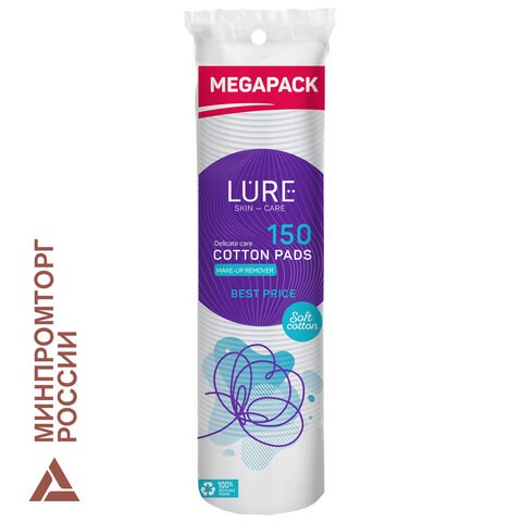Ватные диски КОМПЛЕКТ 150 шт., LURE, двусторонние, 10796