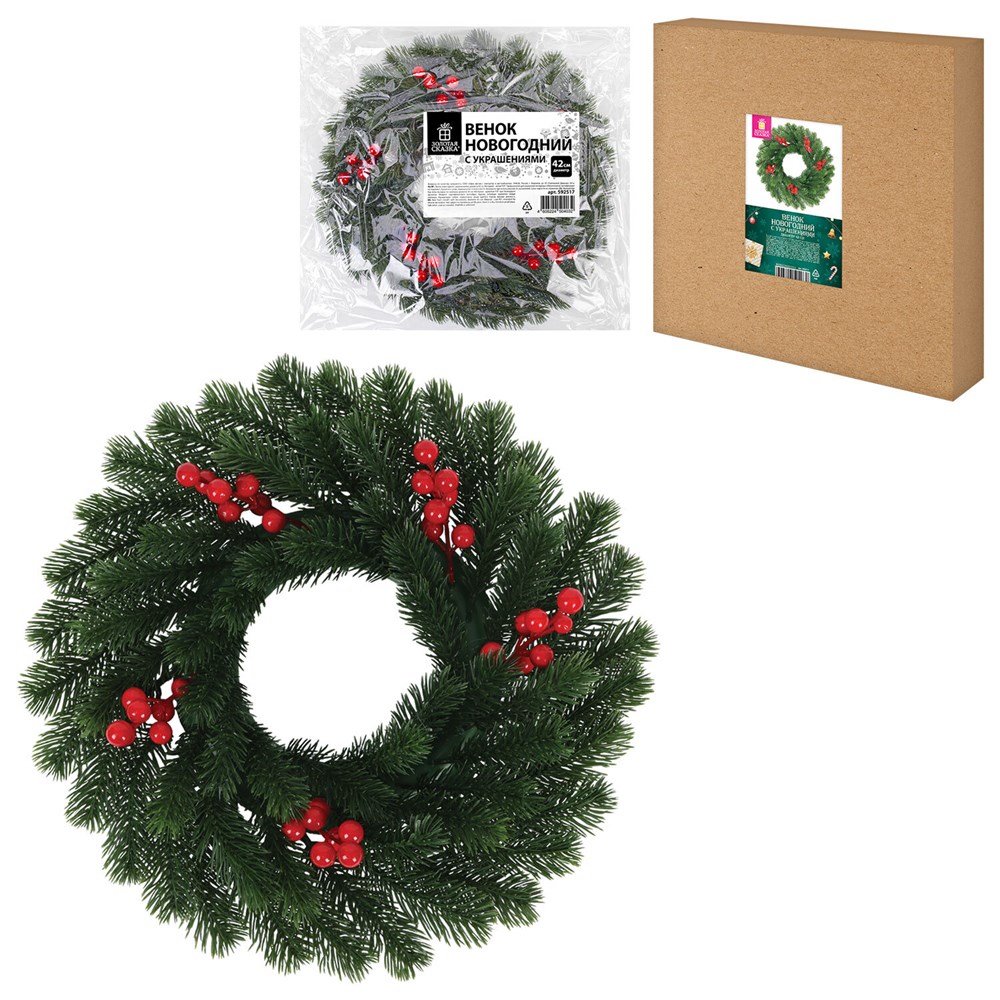 Венок новогодний, диаметр 42 см "Красные ягодки", с декором, литой ПЭТ, ЗОЛОТАЯ СКАЗКА, 592517