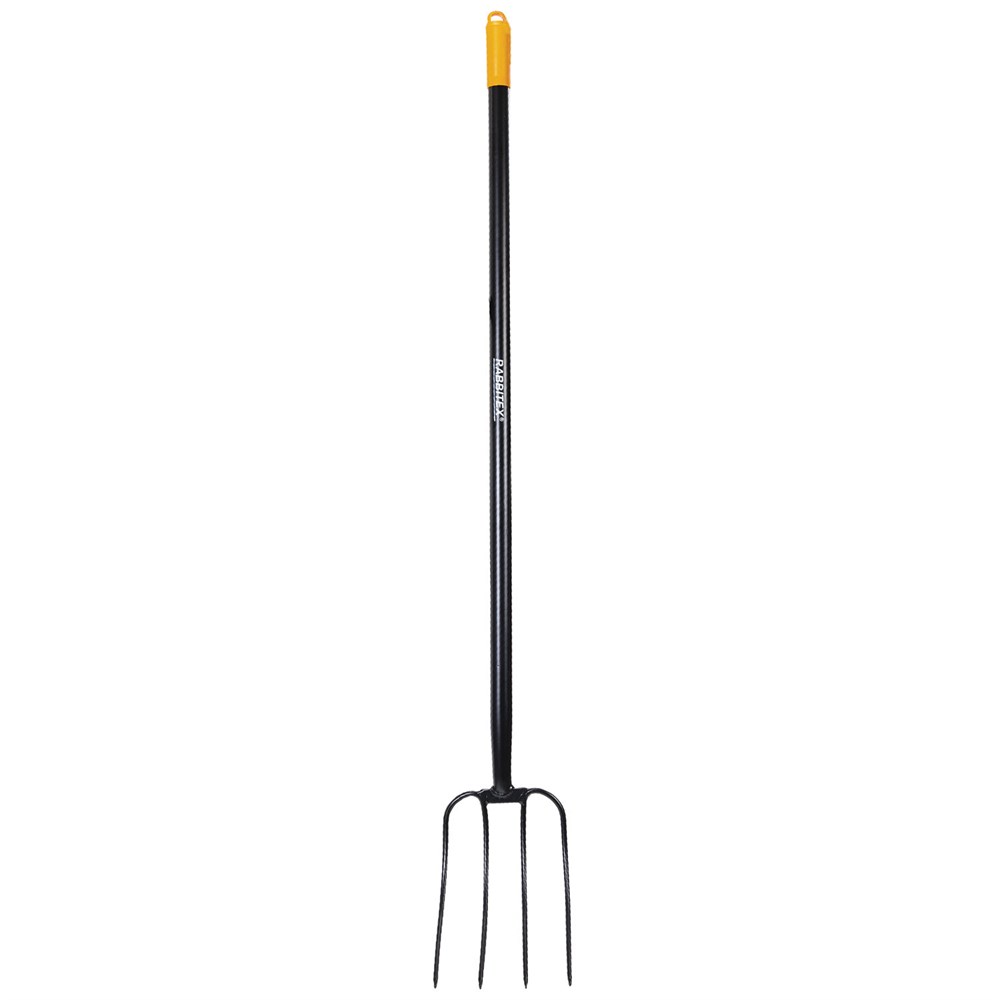 Максимальная надежность обеспечивается цельной конструкцией из стали, прошедшей специальную закалку. Инструмент способен выдержать любые нагрузки при длительной работе без потери прочности. Вилы оснащены 4 острыми стальными зубьями, расположенными под оптимальным углом для эффективной работы с любыми материалами.