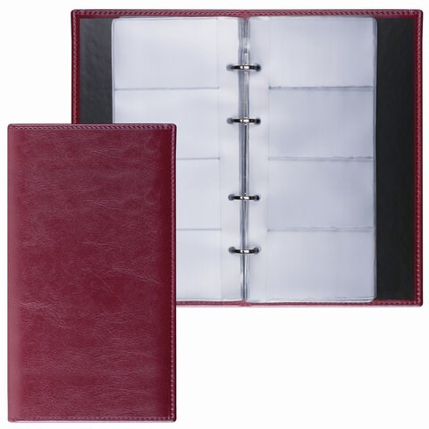 Визитница на кольцах BRAUBERG "Imperial", на 240 визиток, под гладкую кожу, бордовая, 231665