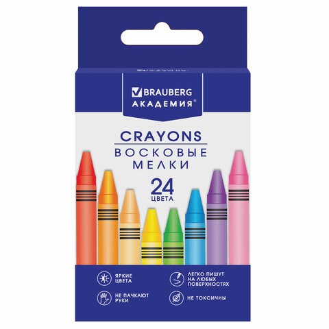 Восковые мелки BRAUBERG "АКАДЕМИЯ", НАБОР 24 цвета, 227285